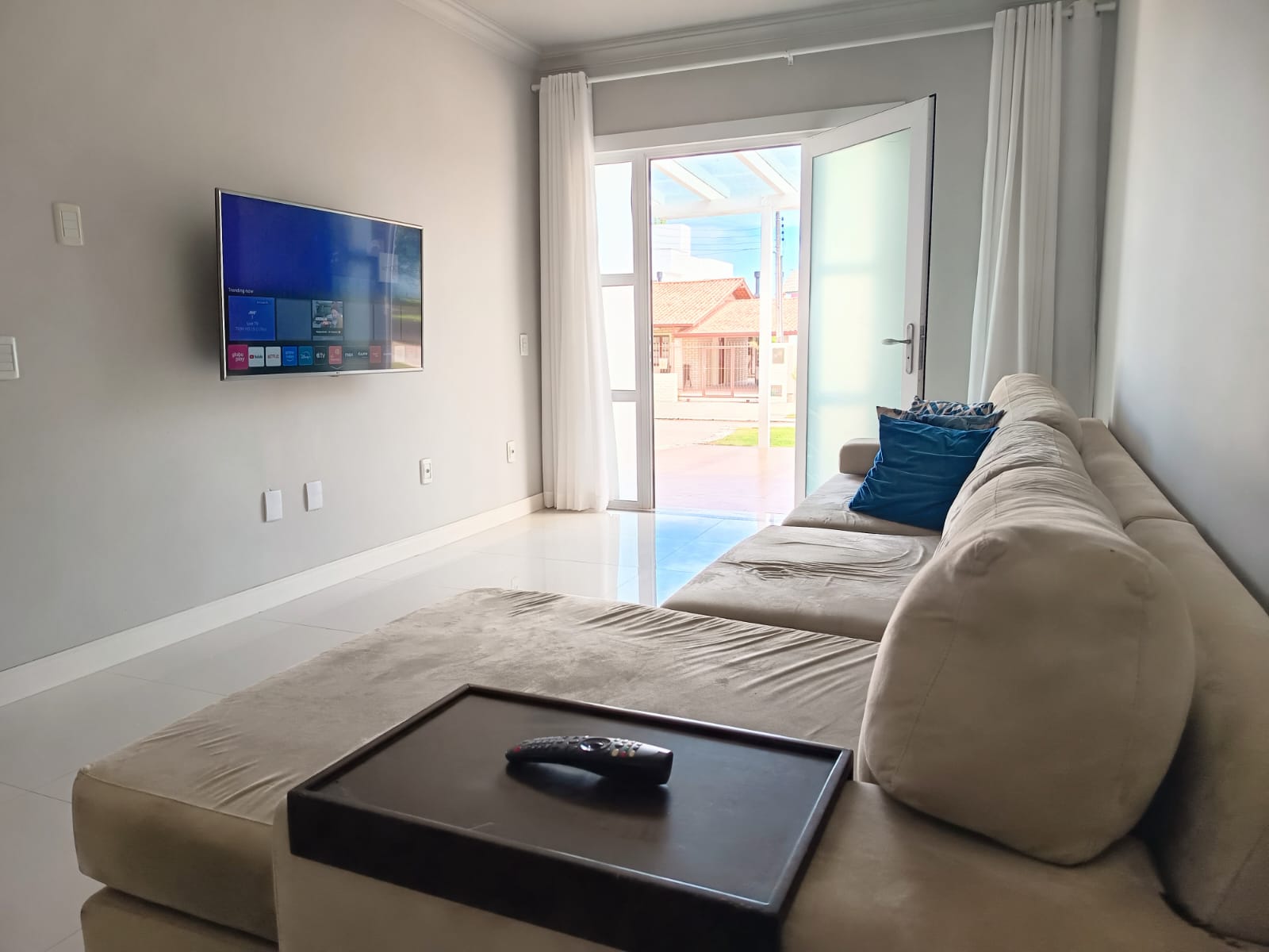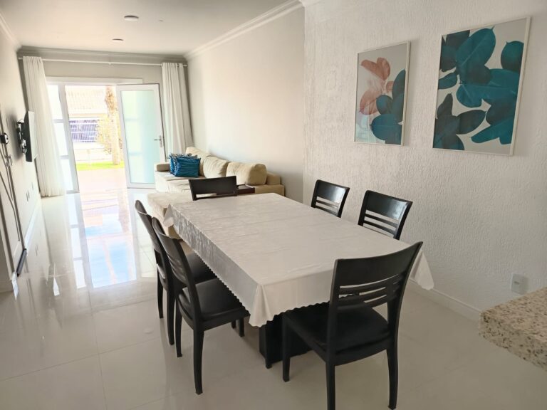 Acogedora casa de 2 plantas a solo 100 m aprox de la Playa Daniela, en Florianópolis. Disfrute de unas vacaciones inolvidables con total comodidad y una ubicación privilegiada. Planta Alta: Suites Privadas: Dos suites con camas dobles, una habitación adicional con una litera versátil y un sofá cama para más huéspedes. Todas las habitaciones cuentan con aire acondicionado split, ventilador de techo y balcones privados con vistas despejadas. Planta Baja: Espacios Integrados: Amplia sala de estar con un cómodo sofá y Smart TV, comedor para 8 personas y cocina totalmente equipada. Baño de visitas, área de servicio con lavadora y secadora, patio gourmet con barbacoa y estacionamiento para hasta 2 autos. ¡Venga a vivir el paraíso de la Playa Daniela! ¡Reserve ahora y sienta el mar de cerca! Perfecto para familias o grupos de hasta 8 personas.