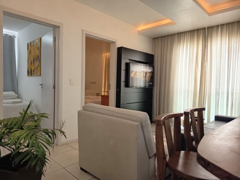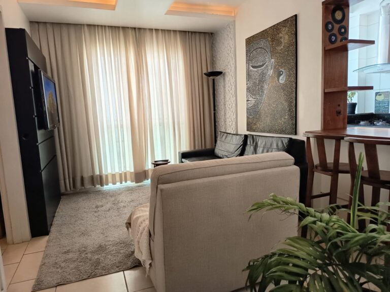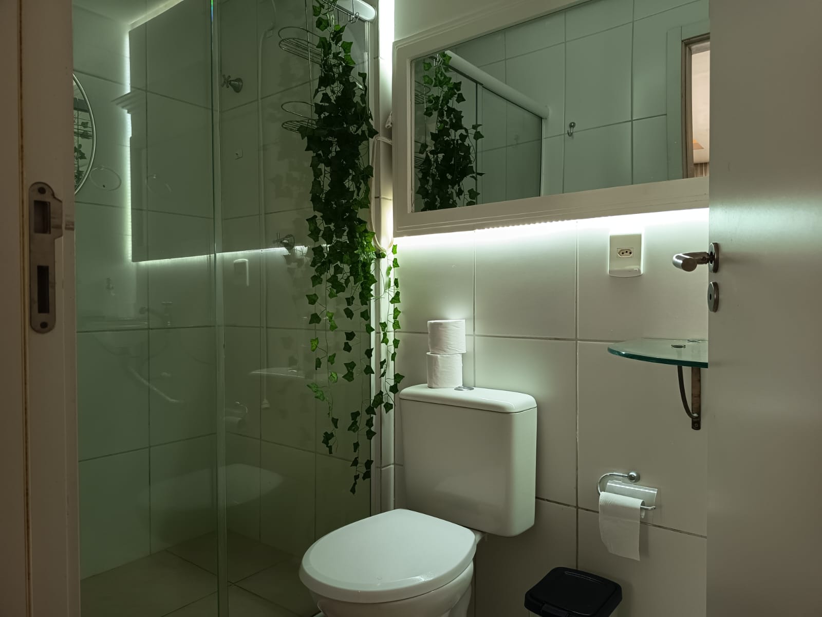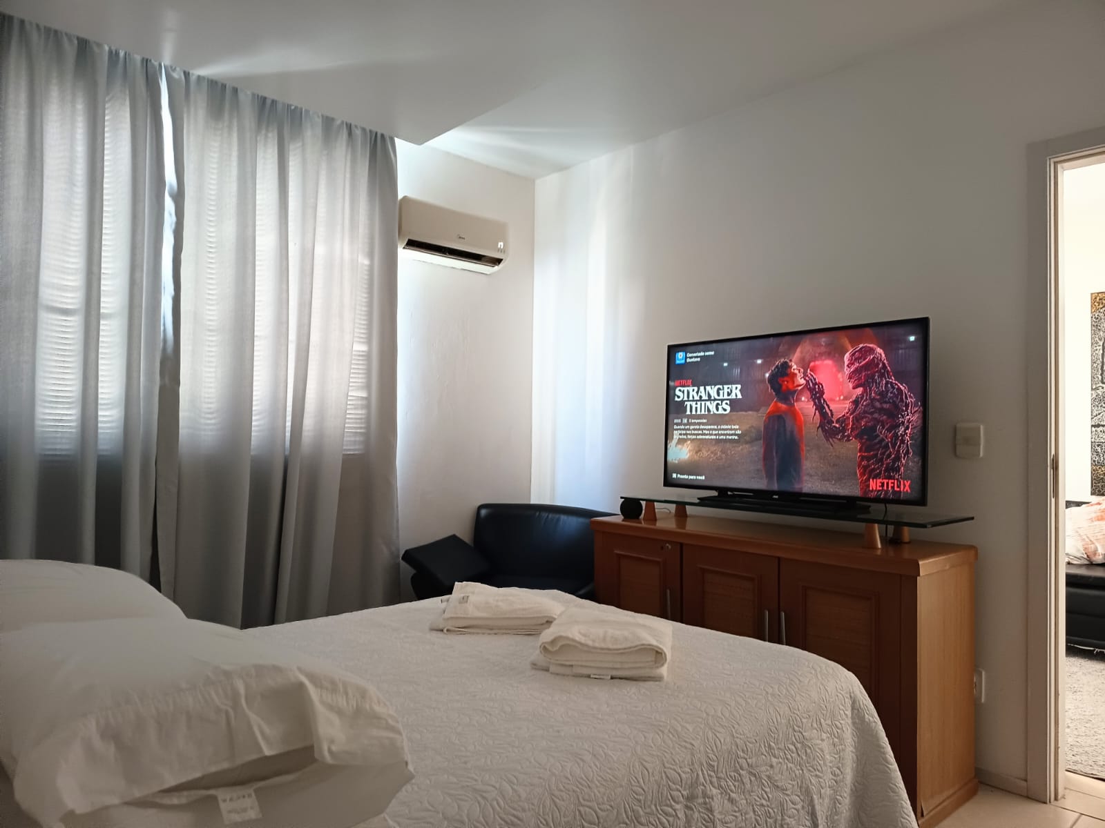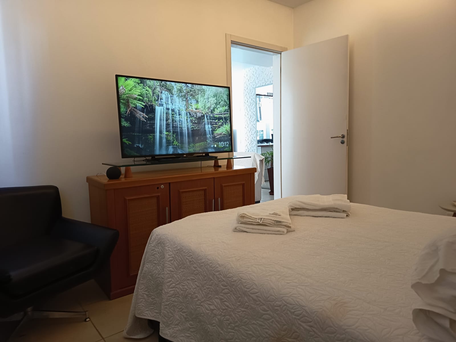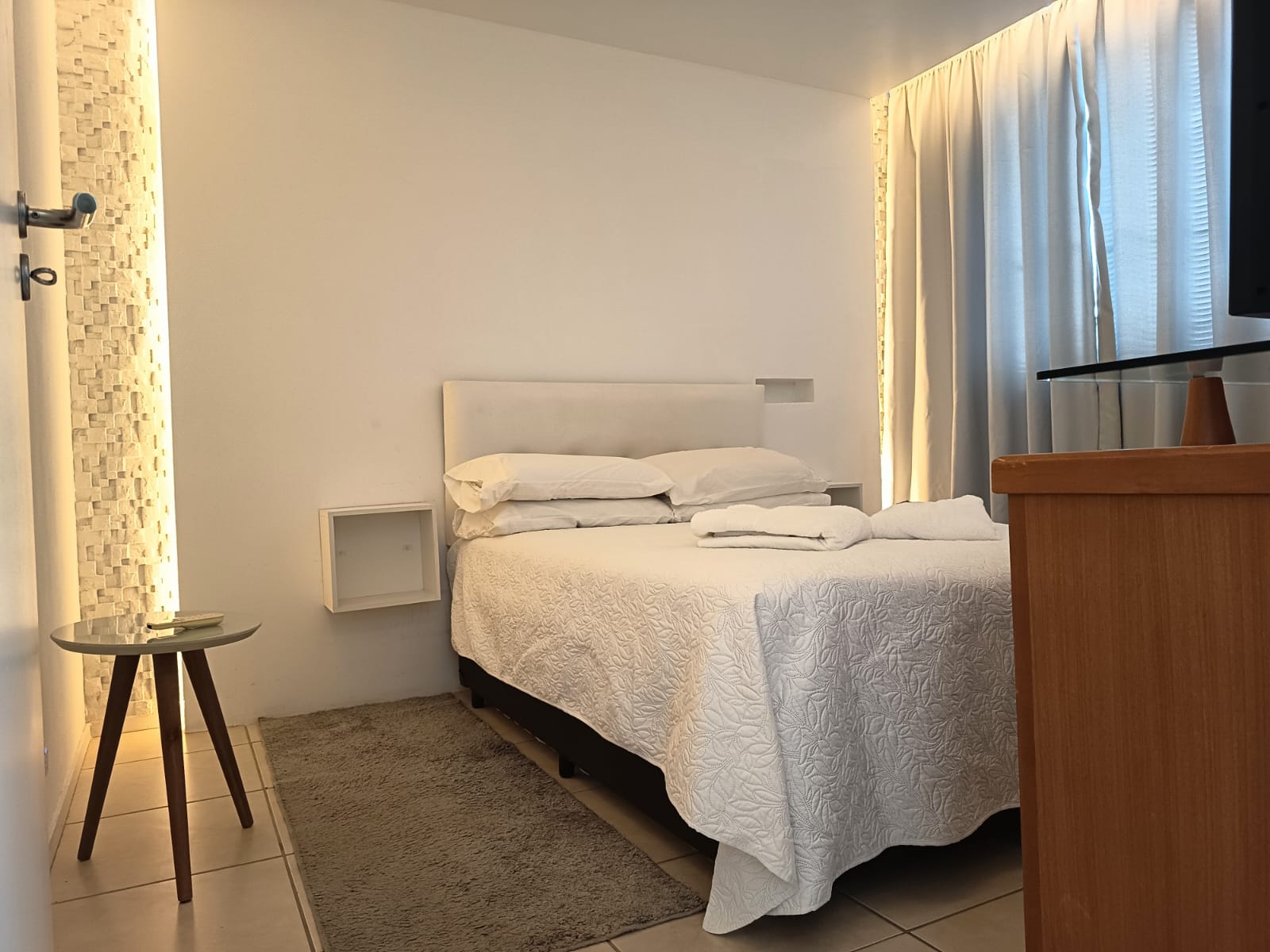 Acogedor departamento cachoeira do bon jesus, baño, cocina equipada, sala de TV, wifi, aire acondicionado y estacionamiento.